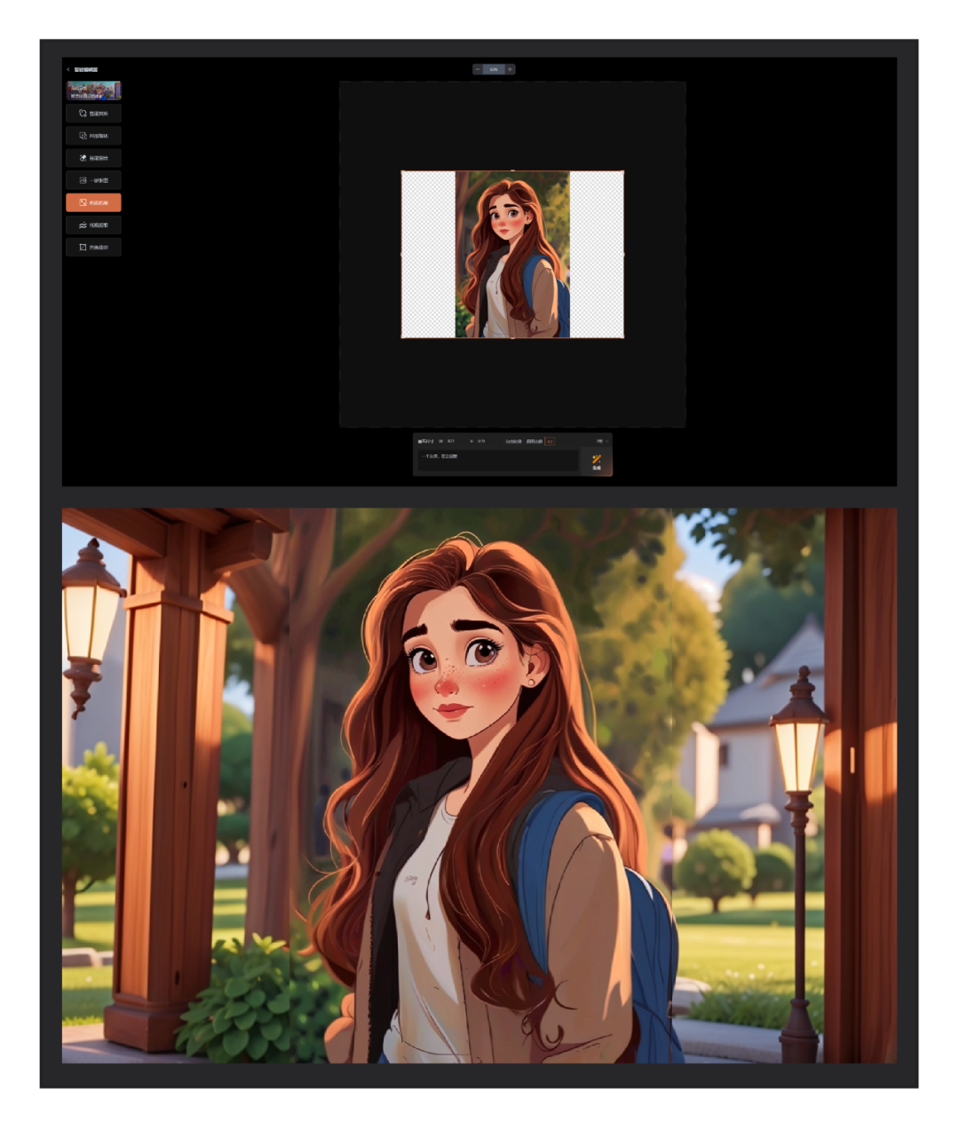 输入相应的描述词,让AI更好地理解画面,点击生成即可完成画面拓展;